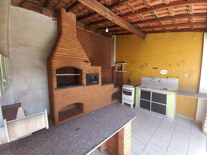 Casa com 03 dormitórios, sala de estar, cozinha ampla, banheiro social, área de serviço, área de lazer com churrasqueira, quarto nos fundos para dispensa, banheiro de apoio e 02 vagas de garagem.
