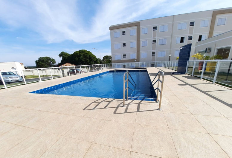 Condomínio com portaria 24h, piscina, quiosque, salão de festa e playground.